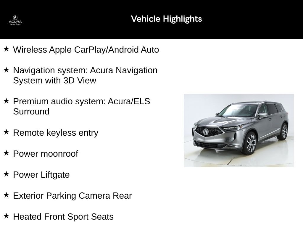 CARFAX One-Owner. Liquid Carbon Metallic 2024 Acura MDX Technology 2024 Acura MDX Technology SH-AWD SH-AWD 10-Speed Automatic 3.5L V6 SOHC i-VTEC 24V 2024 Acura MDX Technology in Liquid Carbon Metallic, Wireless Apple CarPlay/Android Auto, Exterior Parking Camera Rear, Heated Front Sport Seats, Navigation system: Acura Navigation System with 3D View, Power Liftgate, Power moonroof, Premium audio system: Acura/ELS Surround, Remote keyless entry, Wheels: 20" x 9J Aluminum Alloy.