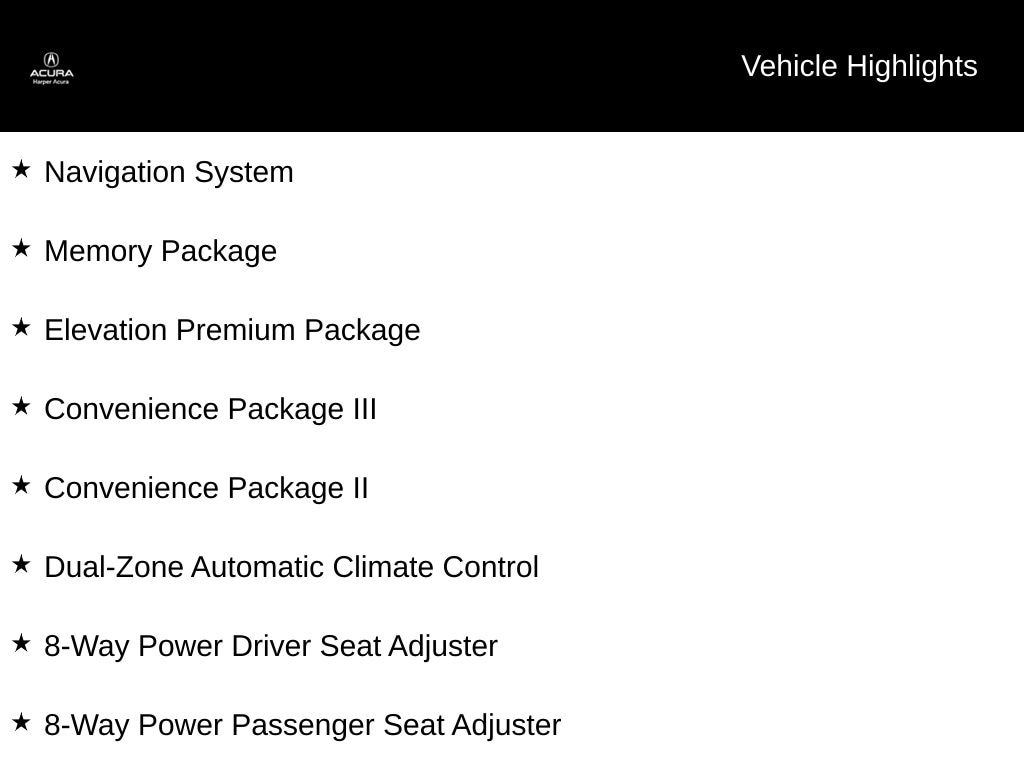 - Convenience Package III with Ventilated Front Seats, Heated Rear Seats, and Memory Seating