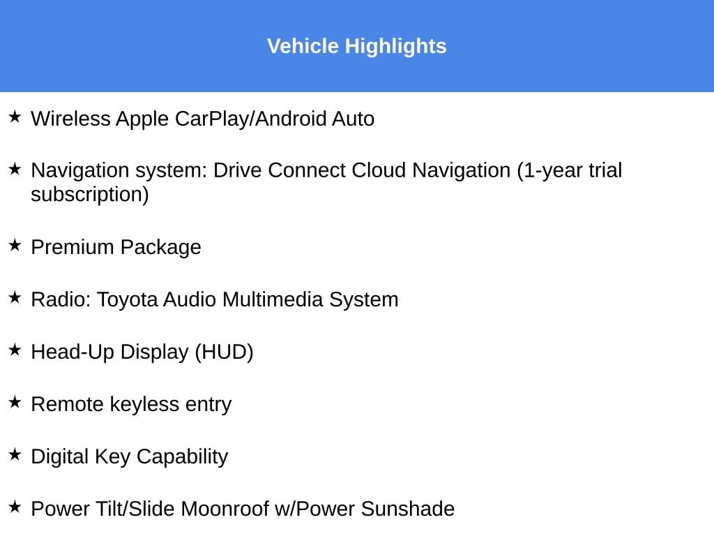 - Radio: Toyota Audio Multimedia System