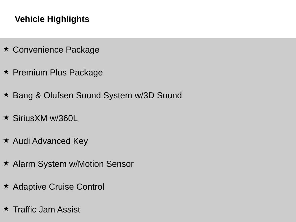 - Smart device integration: Audi smartphone interface (Apple CarPlay/Android Auto)