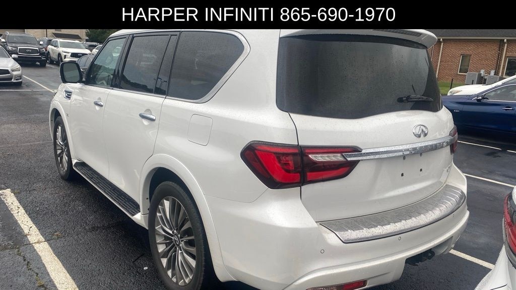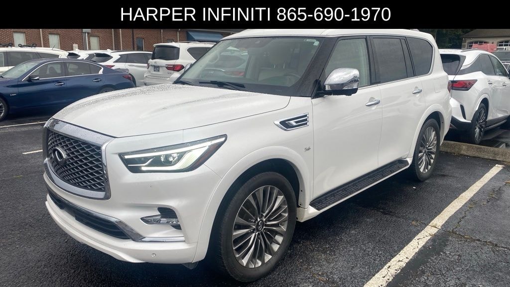 Harper INFINITI is pumped up to offer this charming 2019 INFINITI QX80 in Moonstone White HARPER INFINITI believes in the quality of the vehicles we sell so well that we provide an UNLIMITED MILES, POWERTRAIN WARRANTY on every new and qualifying pre-owned vehicle it sells!!! This warranty is good at any ASE certified shop in the 48 continental United States!! Check out all these great options 22" Wheel Package (Wheels: 22" x 8.0" 14-Spoke Forged Aluminum-Alloy), All-Season Package (All-Season Floor Mats and Cargo Area Mat), Cargo Package (First-Aid Kit, High-Density Non-Slip Rear Cargo Carpet, and Nylon-Cord Cargo Net), ProASSIST Package (Backup Collision Intervention (BCI), Blind Spot Intervention (BSI), Blind Spot Warning, Intelligent Cruise Control (Full-Speed Range), and Lane Departure Warning System), Sensory Package (Advanced Climate Control System, Bose Cabin Surround Sound System, Charcoal/Espresso Burl Trim, Chrome Outside Mirror Caps, Climate-Controlled Front Seats, Heated 2nd-Row Seats, and Semi-Aniline Leather-Appointed Seating w/Quilting), Theater Package (120V Power Outlet, Dual 8" Color Monitors, and Wireless Headphones (2)), Navigation system: INFINITI InTouch Navigation, 13 Speakers, 2.94 Axle Ratio, 3rd row seats: split-bench, 4-Wheel Disc Brakes, ABS brakes, Air Conditioning, Alloy wheels, AM/FM radio: SiriusXM, Anti-whiplash front head restraints, Auto High-beam Headlights, Auto tilt-away steering wheel, Auto-dimming door mirrors, Auto-dimming Rear-View mirror, Auto-leveling suspension, Automatic temperature control, Brake assist, Bumpers: body-color, CD player, Delay-off headlights, Driver door bin, Driver vanity mirror, Dual front impact airbags, Dual front side impact airbags, DVD-Audio, Electronic Stability Control, Emergency communication system: INFINITI Connection, Four wheel independent suspension, Front anti-roll bar, Front Bucket Seats, Front Center Armrest, Front dual zone A/C, Front fog lights, Front reading lights, Fully automatic headlights, Garage door transmitter: HomeLink, Genuine wood console insert, Genuine wood dashboard insert, Genuine wood door panel insert, Heated door mirrors, Heated Front Bucket Seats, Heated front seats, Heated steering wheel, Illuminated entry, INFINITI Radiant Welcome Lighting, Leather Shift Knob, Leather steering wheel, Leather-Appointed Seats w/Stratford Burl Trim, Literature Kit, Low tire pressure warning, Memory seat, Occupant sensing airbag, Outside temperature display, Overhead airbag, Overhead console, Panic alarm, Passenger door bin, Passenger vanity mirror, Power door mirrors, Power driver seat, Power Liftgate, Power moonroof, Power passenger seat, Power steering, Power windows, Radiant Illuminated Kick Plates, Radio data system, Radio: AM/FM/HD w/Single In-Dash CD/DVD Player & MP3, Rain sensing wipers, Rear air conditioning, Rear anti-roll bar, Rear audio controls, Rear reading lights, Rear seat center armrest, Rear window defroster, Rear window wiper, Reclining 3rd row seat, Remote keyless entry, Roof rack: rails only, Roof Rail Cross Bars, Security system, Speed control, Speed-sensing steering, Split fo