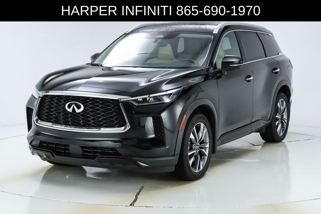 Harper INFINITI is excited to offer this stunning 2023 INFINITI QX60 LUXE in Black. HARPER INFINITI believes in the quality of the vehicles we sell so well that we provide an UNLIMITED MILES, POWERTRAIN WARRANTY on every new and qualifying pre-owned vehicle it sells!!! This warranty is good at any ASE certified shop in the 48 continental United States!! Check out all these great options: INFINITI InTouch Navigation, 9 Speakers, SiriusXM Radio, Dual-Zone Automatic Climate Control, Heated and Ventilated Front Seats, Power Liftgate, and Panoramic Moonroof.