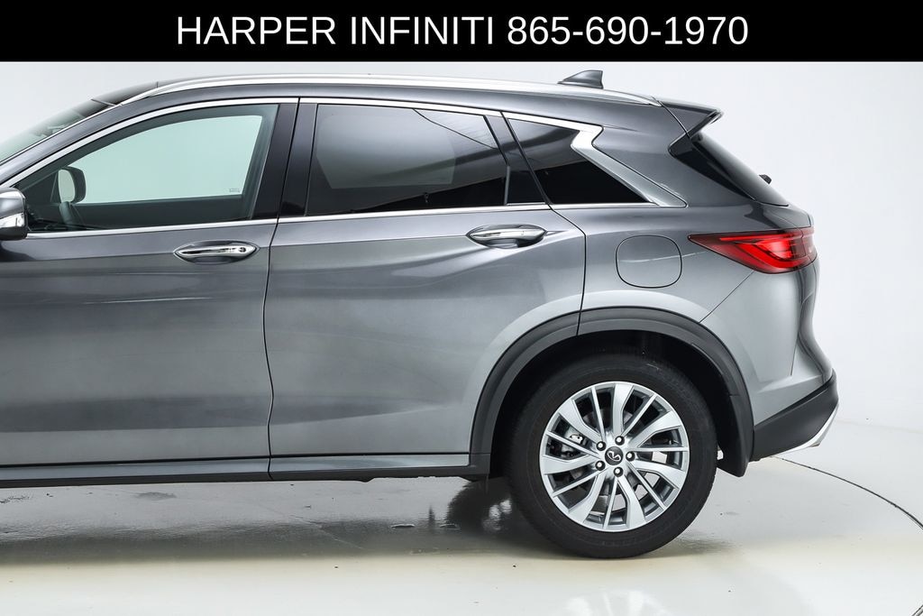 Harper INFINITI is proud to offer this outstanding 2024 INFINITI QX50 in Graphite Shadow HARPER INFINITI believes in the quality of the vehicles we sell so well that we provide an UNLIMITED MILES, POWERTRAIN WARRANTY on every new and qualifying pre-owned vehicle it sells!!! This warranty is good at any ASE certified shop in the 48 continental United States!! Check out all these great options 4-Wheel Disc Brakes, 5.846 Axle Ratio, 6 Speakers, ABS brakes, Air Conditioning, Alloy wheels, AM/FM radio: SiriusXM, Auto High-beam Headlights, Auto-dimming Rear-View mirror, Automatic temperature control, Brake assist, Bumpers: body-color, CD player, Delay-off headlights, Driver door bin, Driver vanity mirror, Dual front impact airbags, Dual front side impact airbags, Electronic Stability Control, Emergency communication system: INFINITI InTouch (1-year complimentary trial), Exterior Parking Camera Rear, Four wheel independent suspension, Front anti-roll bar, Front Bucket Seats, Front Center Armrest, Front dual zone A/C, Front reading lights, Fully automatic headlights, Garage door transmitter: HomeLink, Heated door mirrors, Heated Front Bucket Seats, Heated front seats, Illuminated entry, Knee airbag, Leather Shift Knob, Leather steering wheel, Leather-Appointed Seat Trim, Low tire pressure warning, Memory seat, Occupant sensing airbag, Outside temperature display, Overhead airbag, Overhead console, Panic alarm, Passenger door bin, Passenger vanity mirror, Power door mirrors, Power driver seat, Power Liftgate, Power moonroof, Power passenger seat, Power steering, Power windows, Radio data system, Radio: HD Audio System, Rear anti-roll bar, Rear Parking Sensors, Rear reading lights, Rear seat center armrest, Rear side impact airbag, Rear window defroster, Rear window wiper, Remote keyless entry, Security system, Speed control, Speed-sensing steering, Speed-Sensitive Wipers, Split folding rear seat, Spoiler, Steering wheel mounted audio controls, Tachometer, Telescoping steering wheel, Tilt steering wheel, Traction control, Trip computer, Turn signal indicator mirrors, Variably intermittent wipers, and Wheels: 19" Silver Painted Aluminum Alloy.
