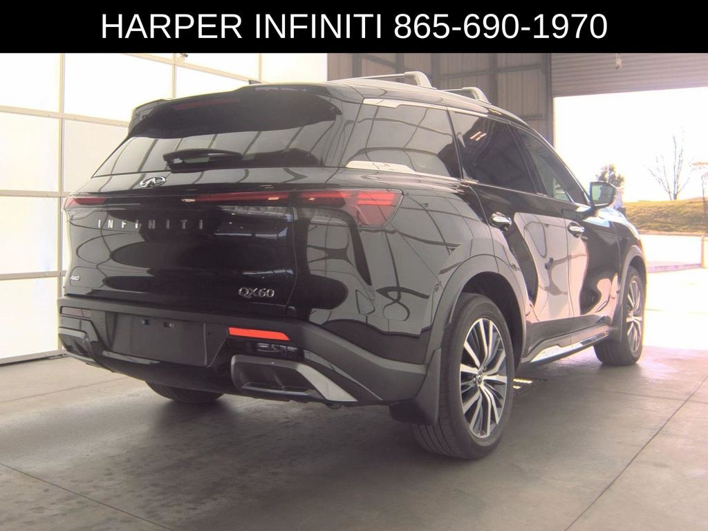 Harper Infiniti is excited to offer this stunning 2025 INFINITI QX60 Sensory in Black. HARPER INFINITI believes in the quality of the vehicles we sell so well that we provide an UNLIMITED MILES, POWERTRAIN WARRANTY on every new and qualifying pre-owned vehicle it sells!!! This warranty is good at any ASE certified shop in the 48 continental United States!! Check out all these great options - Adaptive Front Lighting System, 10.8" Head-Up Display, Smart Rear View Mirror, Navigation system: INFINITI InTouch Navigation, 17 Speakers, AM/FM radio: SiriusXM, Bose Performance Series 17-Speaker Sound System, Radio data system, Radio: Bose Performance Series, Air Conditioning, Automatic temperature control, Front dual zone A/C, Rear air conditioning, Rear window defroster, Memory seat, Power driver seat, Power steering, Power windows, Remote keyless entry, Steering wheel memory, Steering wheel mounted audio controls, Speed control, Power Liftgate, Brake assist, Electronic Stability Control, Four wheel independent suspension, Speed-sensing steering, Traction control, Auto High-beam Headlights, Delay-off headlights, Fully automatic headlights, Auto-dimming door mirrors, Bumpers: body-color, Heated door mirrors, Power door mirrors, Premium Paint, Splash Guards, Spoiler, Turn signal indicator mirrors, Apple CarPlay/Android Auto, Auto tilt-away steering wheel, Auto-dimming Rear-View mirror, Climate Controlled Massaging Front Bucket Seats, and more!