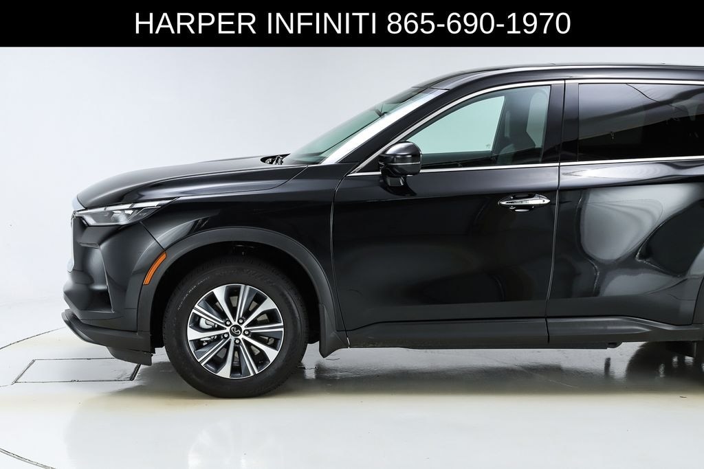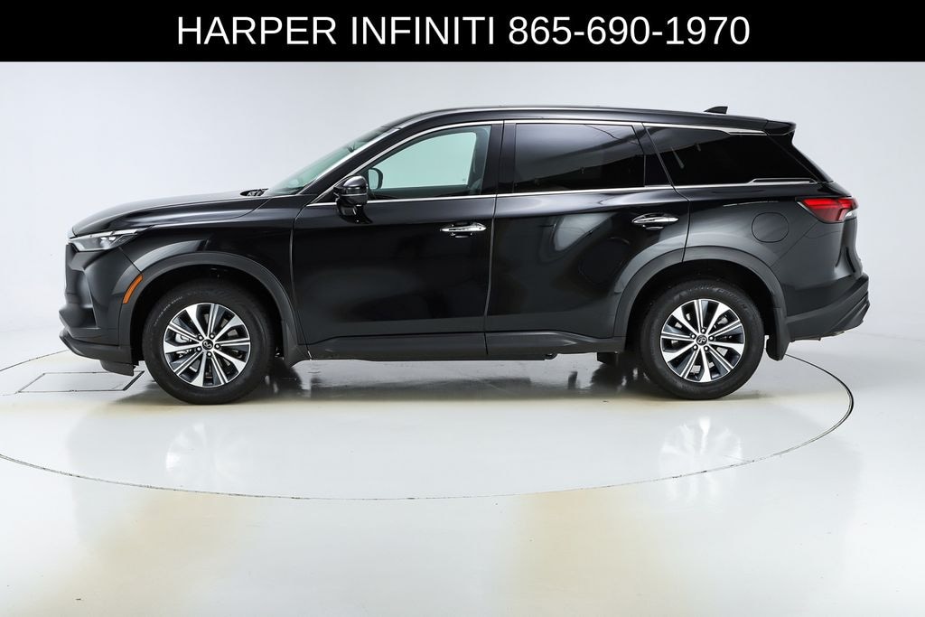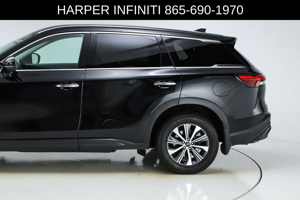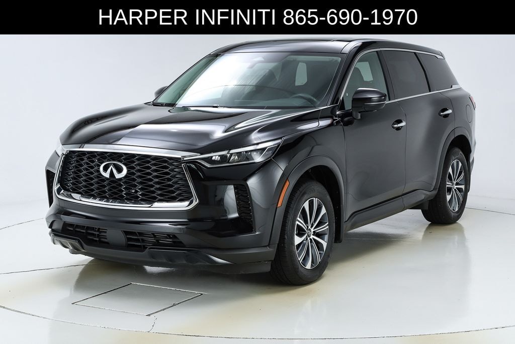 Harper INFINITI is proud to offer this great 2025 INFINITI QX60 in Mineral Black HARPER INFINITI believes in the quality of the vehicles we sell so well that we provide an UNLIMITED MILES, POWERTRAIN WARRANTY on every new and qualifying pre-owned vehicle it sells!!! This warranty is good at any ASE certified shop in the 48 continental United States!! Check out all these great options 3rd row seats: bench, 4-Wheel Disc Brakes, 9 Speakers, ABS brakes, Air Conditioning, Alloy wheels, AM/FM radio: SiriusXM, Auto High-beam Headlights, Auto-dimming Rear-View mirror, Automatic temperature control, Blind Spot Warning, Brake assist, Delay-off headlights, Driver door bin, Driver vanity mirror, Dual front impact airbags, Dual front side impact airbags, Electronic Stability Control, Four wheel independent suspension, Front anti-roll bar, Front Bucket Seats, Front dual zone A/C, Front reading lights, Fully automatic headlights, Heated door mirrors, Heated front seats, Heated steering wheel, Illuminated entry, Knee airbag, Leather Shift Knob, Leather steering wheel, Leather-Appointed Seating Surfaces, Low tire pressure warning, Memory seat, Occupant sensing airbag, Outside temperature display, Overhead airbag, Overhead console, Panic alarm, Passenger door bin, Passenger vanity mirror, Power door mirrors, Power driver seat, Power Liftgate, Power moonroof, Power passenger seat, Power steering, Power windows, Radio data system, Rain sensing wipers, Rear air conditioning, Rear anti-roll bar, Rear Parking Sensors, Rear reading lights, Rear side impact airbag, Rear window defroster, Rear window wiper, Reclining 3rd row seat, Remote keyless entry, Security system, Speed control, Speed-sensing steering, Speed-Sensitive Wipers, Split folding rear seat, Spoiler, Steering wheel mounted audio controls, Tachometer, Telescoping steering wheel, Tilt steering wheel, Traction control, Trip computer, Turn signal indicator mirrors, and Variably intermittent wipers.