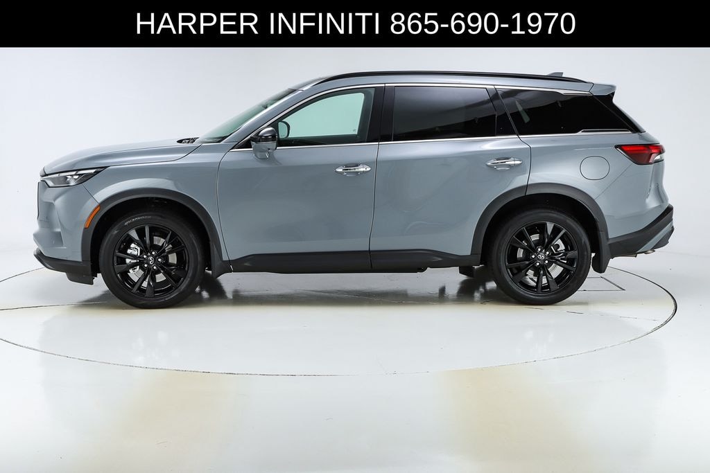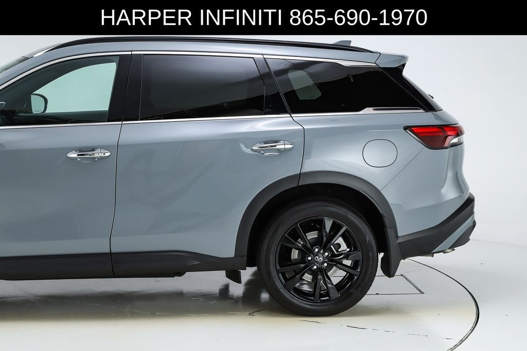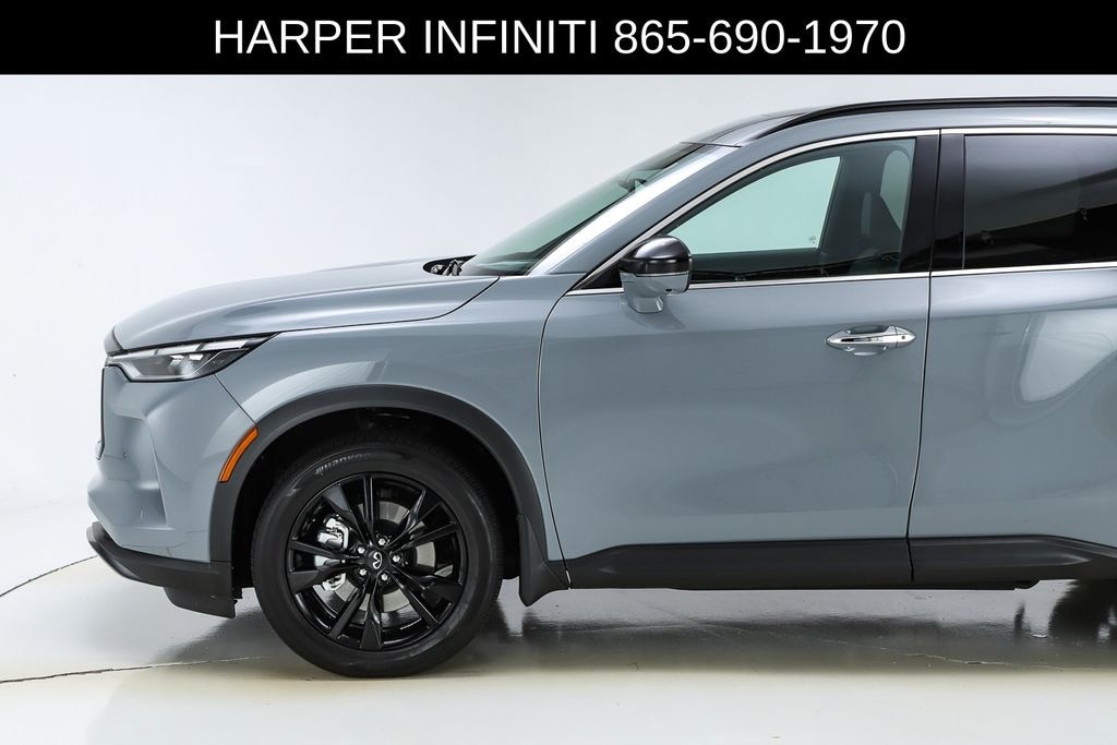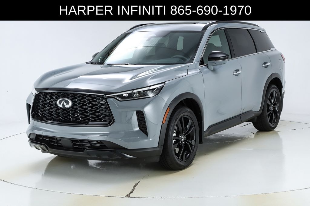Harper INFINITI is pumped up to offer this attractive-looking 2025 INFINITI QX60 in Harbor Gray HARPER INFINITI believes in the quality of the vehicles we sell so well that we provide an UNLIMITED MILES, POWERTRAIN WARRANTY on every new and qualifying pre-owned vehicle it sells!!! This warranty is good at any ASE certified shop in the 48 continental United States!! Check out all these great options Black Edition (Gloss Black Finish BI & Emblems, Gloss Black Finish Grille Surround, Gloss Black Finish Rear Badge, Gloss Black Finish Roof Rails, Illuminated Front & Rear Kick Plates, Radiant Grille BI in Bright Chrome Finish, Welcome Lighting, and Wheels: 20" x 8J Sporty Mach Aluminum Alloy), Navigation system: INFINITI InTouch Navigation, 17 Speakers, 3rd row seats: bench, 4-Wheel Disc Brakes, ABS brakes, Air Conditioning, Alloy wheels, AM/FM radio: SiriusXM, Anti-whiplash front head restraints, Apple CarPlay/Android Auto, Auto High-beam Headlights, Auto tilt-away steering wheel, Auto-dimming door mirrors, Auto-dimming Rear-View mirror, Automatic temperature control, Black Edition (K12), Bose Performance Series 17-Speaker Sound System, Brake assist, Bumpers: body-color, Climate Controlled Front Bucket Seats, Delay-off headlights, Driver door bin, Driver vanity mirror, Dual front impact airbags, Dual front side impact airbags, Electronic Stability Control, Emergency communication system: INFINITI InTouch, Exterior Parking Camera Rear, Floor Mats w/Bench Seats on 3rd Row Tray, Four wheel independent suspension, Front anti-roll bar, Front Bucket Seats, Front Center Armrest, Front dual zone A/C, Front reading lights, Fully automatic headlights, Garage door transmitter: HomeLink, Heated door mirrors, Heated front seats, Heated rear seats, Heated steering wheel, Illuminated entry, Knee airbag, Leather Shift Knob, Leather steering wheel, Leather-Appointed Seating Surfaces, Literature Kit, Low tire pressure warning, Memory seat, Occupant sensing airbag, Outside temperature display, Overhead airbag, Overhead console, Panic alarm, Passenger door bin, Passenger vanity mirror, Power door mirrors, Power driver seat, Power Liftgate, Power moonroof, Power passenger seat, Power steering, Power windows, Premium Paint, Radio data system, Radio: Bose Performance Series, Rain sensing wipers, Rear air conditioning, Rear anti-roll bar, Rear reading lights, Rear seat center armrest, Rear side impact airbag, Rear window defroster, Rear window wiper, Reclining 3rd row seat, Remote keyless entry, Security system, Speed control, Speed-sensing steering, Speed-Sensitive Wipers, Splash Guards, Split folding rear seat, Spoiler, Steering wheel memory, Steering wheel mounted audio controls, Tachometer, Telescoping steering wheel, Tilt steering wheel, Traction control, Trip computer, Turn signal indicator mirrors, Variably intermittent wipers, Ventilated front seats, and Wheels: 20" x 8J Sporty Machined Aluminum Alloy.