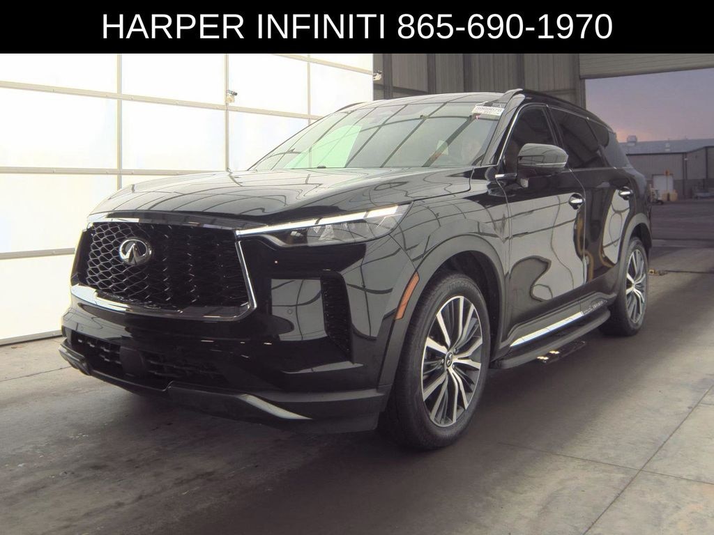 Harper INFINITI is pumped up to offer this wonderful 2025 INFINITI QX60 in Mineral Black HARPER INFINITI believes in the quality of the vehicles we sell so well that we provide an UNLIMITED MILES, POWERTRAIN WARRANTY on every new and qualifying pre-owned vehicle it sells!!! This warranty is good at any ASE certified shop in the 48 continental United States!! Check out all these great options 17 Speakers, 3rd row seats: bench, 4-Wheel Disc Brakes, ABS brakes, Air Conditioning, Alloy wheels, AM/FM radio: SiriusXM, Auto High-beam Headlights, Auto tilt-away steering wheel, Auto-dimming door mirrors, Auto-dimming Rear-View mirror, Automatic temperature control, Brake assist, Delay-off headlights, Driver door bin, Driver vanity mirror, Dual front impact airbags, Dual front side impact airbags, Electronic Stability Control, Exterior Parking Camera Rear, Four wheel independent suspension, Front anti-roll bar, Front Bucket Seats, Front dual zone A/C, Front reading lights, Fully automatic headlights, Garage door transmitter: HomeLink, Heads-Up Display, Heated door mirrors, Heated front seats, Heated rear seats, Heated steering wheel, Illuminated entry, Knee airbag, Leather Shift Knob, Leather steering wheel, Low tire pressure warning, Memory seat, Navigation system: INFINITI InTouch Navigation, Occupant sensing airbag, Outside temperature display, Overhead airbag, Overhead console, Panic alarm, Passenger door bin, Passenger vanity mirror, Power door mirrors, Power driver seat, Power Liftgate, Power moonroof, Power passenger seat, Power steering, Power windows, Radiant Grille Emblem, Radio data system, Rain sensing wipers, Rear air conditioning, Rear anti-roll bar, Rear reading lights, Rear side impact airbag, Rear window defroster, Rear window wiper, Reclining 3rd row seat, Remote keyless entry, Security system, Speed control, Speed-sensing steering, Speed-Sensitive Wipers, Split folding rear seat, Spoiler, Steering wheel memory, Steering wheel mounted audio controls, Tachometer, Telescoping steering wheel, Tilt steering wheel, Traction control, Trip computer, Turn signal indicator mirrors, Variably intermittent wipers, and Ventilated front seats.