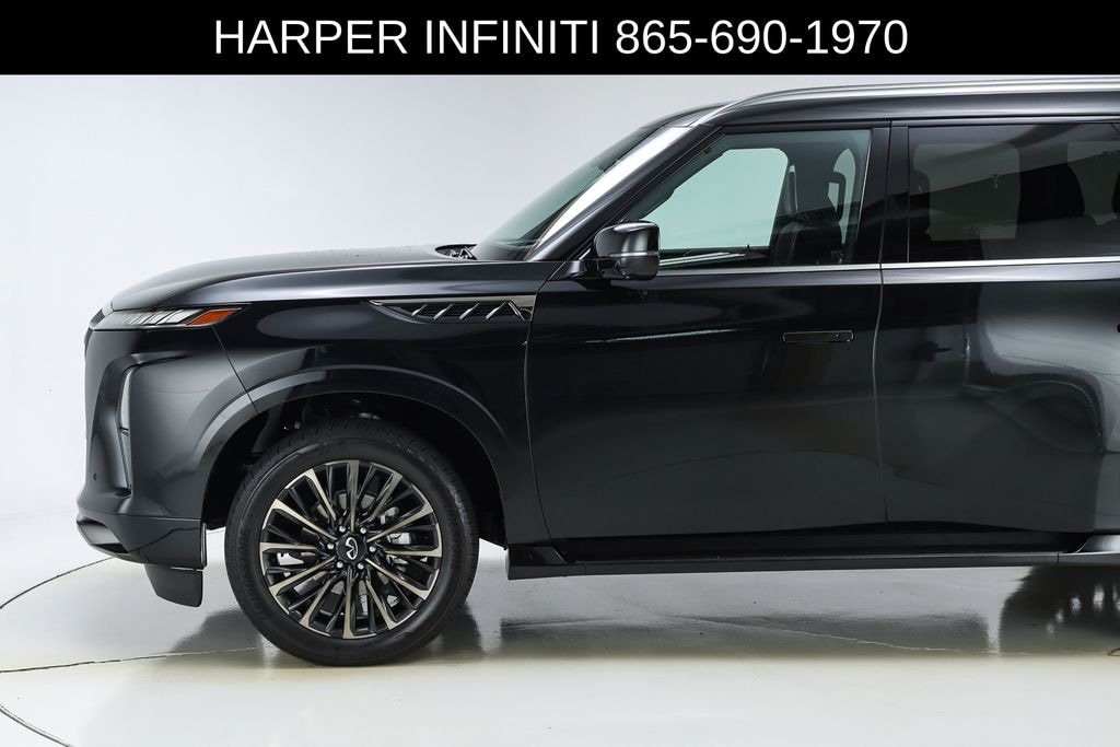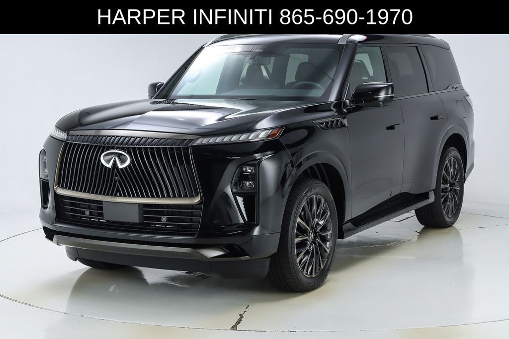Harper INFINITI is proud to offer this terrific 2025 INFINITI QX80 in Mineral Black HARPER INFINITI believes in the quality of the vehicles we sell so well that we provide an UNLIMITED MILES, POWERTRAIN WARRANTY on every new and qualifying pre-owned vehicle it sells!!! This warranty is good at any ASE certified shop in the 48 continental United States!! Check out all these great options 3rd row seats: bench, 4-Wheel Disc Brakes, ABS brakes, Adaptive suspension, Air Conditioning, Alloy wheels, AM/FM radio: SiriusXM with 360L, Anti-whiplash front head restraints, Apple CarPlay/Android Auto, Audio memory, Auto High-beam Headlights, Auto tilt-away steering wheel, Auto-dimming door mirrors, Auto-dimming Rear-View mirror, Auto-leveling suspension, Automatic temperature control, Brake assist, Bumpers: body-color, Climate Controlled Front Bucket Seats w/Massage, Compass, Delay-off headlights, Driver door bin, Driver vanity mirror, Dual front impact airbags, Dual front side impact airbags, Electronic Stability Control, Emergency communication system: INFINITI InTouch, Four wheel independent suspension, Front anti-roll bar, Front Bucket Seats, Front Center Armrest, Front dual zone A/C, Front reading lights, Fully automatic headlights, Garage door transmitter: myQ Connected Garage, Genuine wood dashboard insert, Genuine wood door panel insert, Heads-Up Display, Heated door mirrors, Heated front seats, Heated rear seats, Heated steering wheel, HVAC memory, Illuminated entry, Knee airbag, Leather steering wheel, Low tire pressure warning, Memory seat, Navigation system: Google Built-in, Occupant sensing airbag, Outside temperature display, Overhead airbag, Overhead console, Panic alarm, Passenger door bin, Passenger vanity mirror, Power door mirrors, Power driver seat, Power Liftgate, Power moonroof, Power passenger seat, Power steering, Power windows, Radio data system, Radio: Klipsch Reference Premiere Audio System, Rain sensing wipers, Rear air conditioning, Rear anti-roll bar, Rear reading lights, Rear seat center armrest, Rear window defroster, Rear window wiper, Reclining 3rd row seat, Remote keyless entry, Security system, Semi-Aniline Premium Leather Seating Surfaces, Speed control, Speed-sensing steering, Split folding rear seat, Spoiler, Steering wheel memory, Steering wheel mounted audio controls, Tachometer, Telescoping steering wheel, Tilt steering wheel, Traction control, Trip computer, Turn signal indicator mirrors, Variably intermittent wipers, Ventilated front seats, Ventilated rear seats, and Wheels: 22" x 8" Cast Aluminum Alloy.