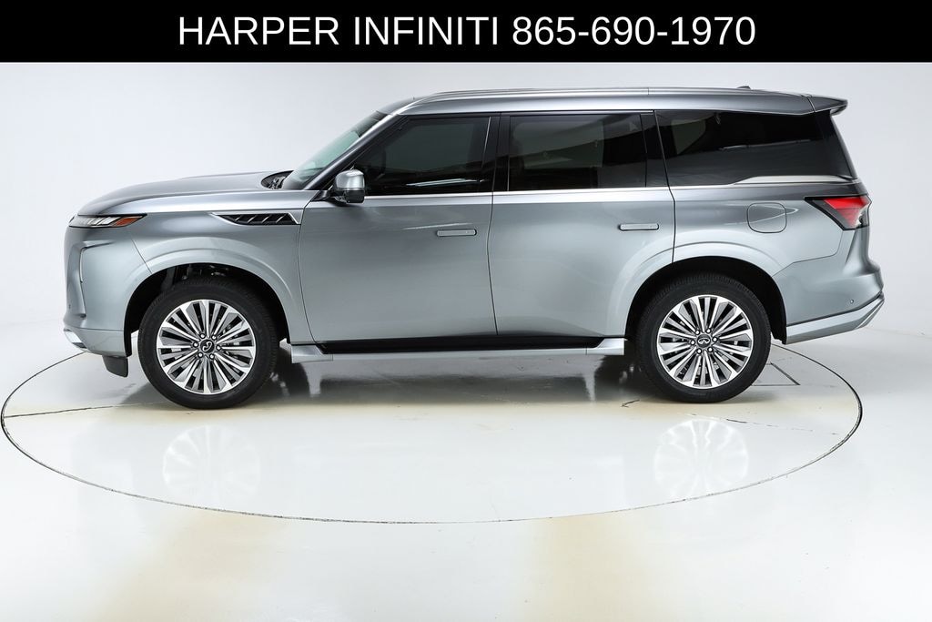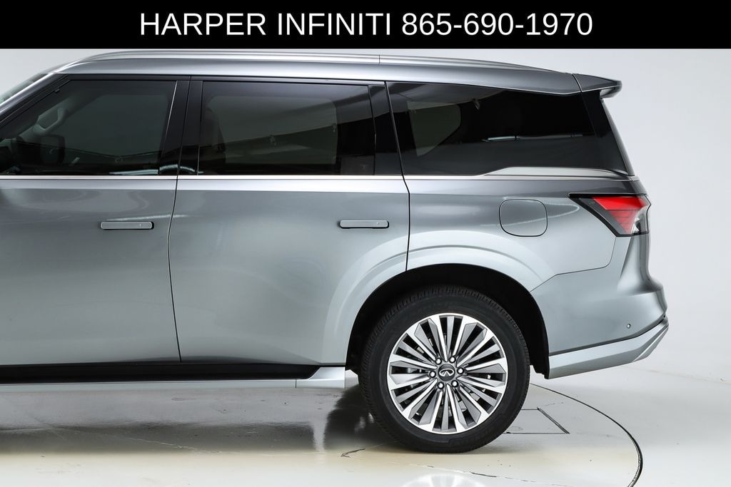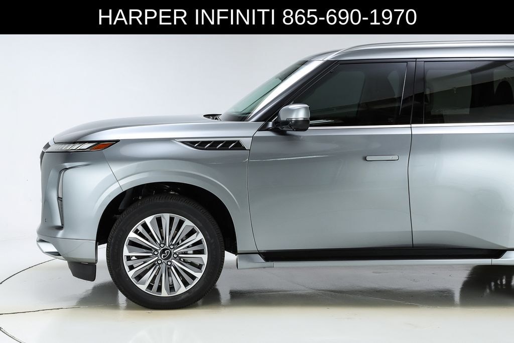 Harper INFINITI is very proud to offer this superb 2025 INFINITI QX80 in Dynamic Metal HARPER INFINITI believes in the quality of the vehicles we sell so well that we provide an UNLIMITED MILES, POWERTRAIN WARRANTY on every new and qualifying pre-owned vehicle it sells!!! This warranty is good at any ASE certified shop in the 48 continental United States!! Check out all these great options Split Bench Seat Package, Navigation system: Google Built-in, 3rd row seats: bench, 4-Wheel Disc Brakes, ABS brakes, Adaptive suspension, Air Conditioning, Alloy wheels, AM/FM radio: SiriusXM with 360L, Anti-whiplash front head restraints, Apple CarPlay/Android Auto, Audio memory, Auto High-beam Headlights, Auto tilt-away steering wheel, Auto-dimming door mirrors, Auto-dimming Rear-View mirror, Auto-leveling suspension, Automatic temperature control, Brake assist, Bumpers: body-color, Climate Controlled Front Bucket Seats w/Massage, Compass, Delay-off headlights, Driver door bin, Driver vanity mirror, Dual front impact airbags, Dual front side impact airbags, Electronic Stability Control, Emergency communication system: INFINITI InTouch, Four wheel independent suspension, Front anti-roll bar, Front Bucket Seats, Front Center Armrest, Front dual zone A/C, Front reading lights, Fully automatic headlights, Garage door transmitter: myQ Connected Garage, Genuine wood dashboard insert, Genuine wood door panel insert, Heads-Up Display, Heated door mirrors, Heated front seats, Heated rear seats, Heated steering wheel, HVAC memory, Illuminated entry, Knee airbag, Leather steering wheel, Low tire pressure warning, Memory seat, Occupant sensing airbag, Outside temperature display, Overhead airbag, Overhead console, Panic alarm, Passenger door bin, Passenger vanity mirror, Power door mirrors, Power driver seat, Power Liftgate, Power moonroof, Power passenger seat, Power steering, Power windows, Radio data system, Radio: Klipsch Reference Premiere Audio System, Rain sensing wipers, Rear air conditioning, Rear anti-roll bar, Rear reading lights, Rear seat center armrest, Rear window defroster, Rear window wiper, Reclining 3rd row seat, Remote keyless entry, Security system, Semi-Aniline Premium Leather Seating Surfaces, Speed control, Speed-sensing steering, Split folding rear seat, Spoiler, Steering wheel memory, Steering wheel mounted audio controls, Tachometer, Telescoping steering wheel, Tilt steering wheel, Traction control, Trip computer, Turn signal indicator mirrors, Variably intermittent wipers, Ventilated front seats, Ventilated rear seats, and Wheels: 22" x 8" Cast Aluminum Alloy.