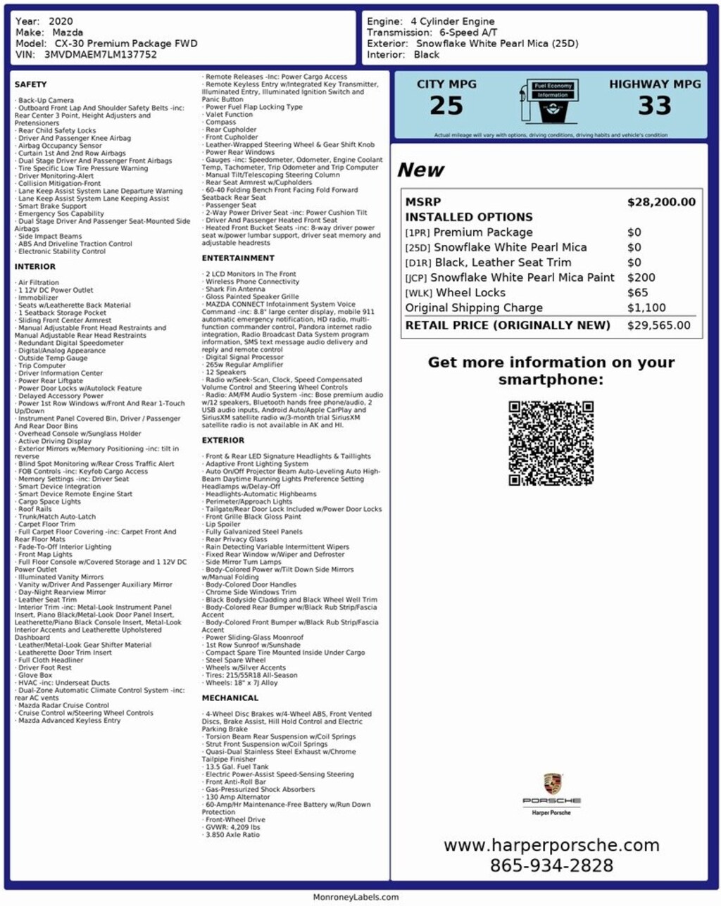 Inspected by our Porsche Certified technicians, all maintenance up to date, and extended vehicle service contracts are available for further peace of mind (if eligible). Our Pre-Owned vehicles are priced to market, making the transaction as transparent and hassle-free as possible. Please call Harper Porsche for details (865) 934-2828 or visit us online at www.harperporsche.com. Dealer not responsible for automated VIN populated options list. Buyer to verify specs with Sales Consultant. Come see why Harper has the easiest car buying experience in the South!