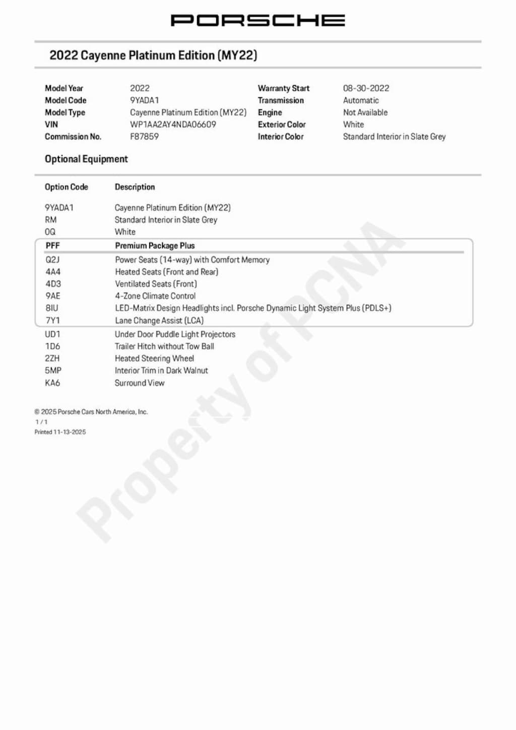 Used 2022 PorscheCayenne Platinum Edition