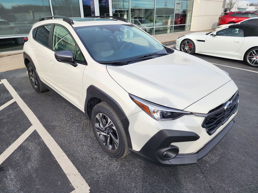 Check out all these great options All-Weather Package (Heated Exterior Mirrors, Heated Front Seats, and Heated Wipers), BSD/RCTA & Moonrf & All Weather Pkg & Pwr Dr. Seat (10-Way Power Driver's Seat, Blind Spot Detection w/Rear Cross-Traffic Alert, and Power Moonroof), 3.90 Axle Ratio, 4-Wheel Disc Brakes, 6 Speakers, ABS brakes, Air Conditioning, Alloy wheels, AM/FM radio: SiriusXM, Anti-whiplash front head restraints, Auto High-beam Headlights, Automatic temperature control, Brake assist, Bumpers: body-color, Driver door bin, Driver vanity mirror, Dual front impact airbags, Dual front side impact airbags, Electronic Stability Control, Emergency communication system: STARLINK Safety and Security (Subscription Required), Exterior Parking Camera Rear, Four wheel independent suspension, Front anti-roll bar, Front Bucket Seats, Front Center Armrest, Front dual zone A/C, Front fog lights, Front reading lights, Fully automatic headlights, Illuminated entry, Knee airbag, Low tire pressure warning, Occupant sensing airbag, Outside temperature display, Overhead airbag, Overhead console, Panic alarm, Passenger door bin, Passenger vanity mirror, Power door mirrors, Power steering, Power windows, Premium Cloth Upholstery, Radio data system, Radio: Subaru STARLINK 11.6" Multimedia Plus Sys, Rear anti-roll bar, Rear seat center armrest, Rear window defroster, Rear window wiper, Remote keyless entry, Security system, Speed control, Speed-sensing steering, Split folding rear seat, Spoiler, STARLINK/Apple CarPlay/Android Auto, Steering wheel mounted audio controls, Tachometer, Telescoping steering wheel, Tilt steering wheel, Traction control, Trip computer, Turn signal indicator mirrors, Variably intermittent wipers, and Wheels: 17" x 7.0J Dark Gray Aluminum Alloy. Harper Maserati is proud to offer this attractive 2024 Subaru Crosstrek in Crystal White Pearl This vehicle has passed our comprehensive inspection and comes with the following features;